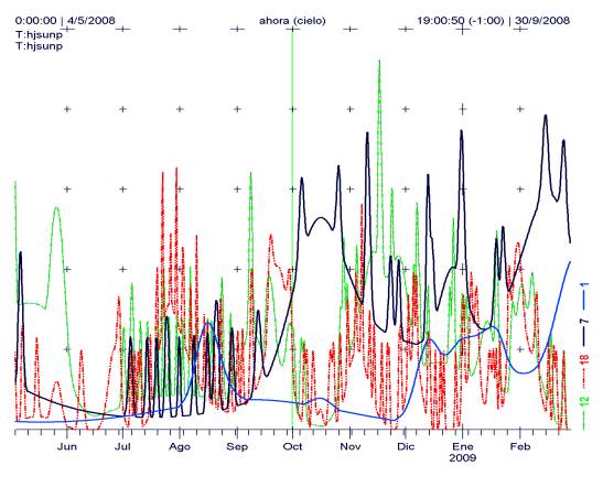 En el grafico de harmogramas se observan las ondas armónicas del año 2008, centrado en los últimos días de septiembre, alrededor del día 29, cuando ocurre el mayor descalabro de la Bolsa de los últimos tiempos. El aumento del armónico 7 está asociado a los estados depresivos, las sorpresas impactantes o los “flipes”, aquellos sucesos que nos dejan “flipados”.