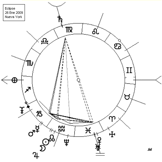 He calculado el eclipse para la ciudad de New York, por ser en estos momentos (15/11/2009) el lugar del mundo donde está el centro de mayor influencia económica sobre el resto del planeta, como ya se ha visto en tiempos anteriores.