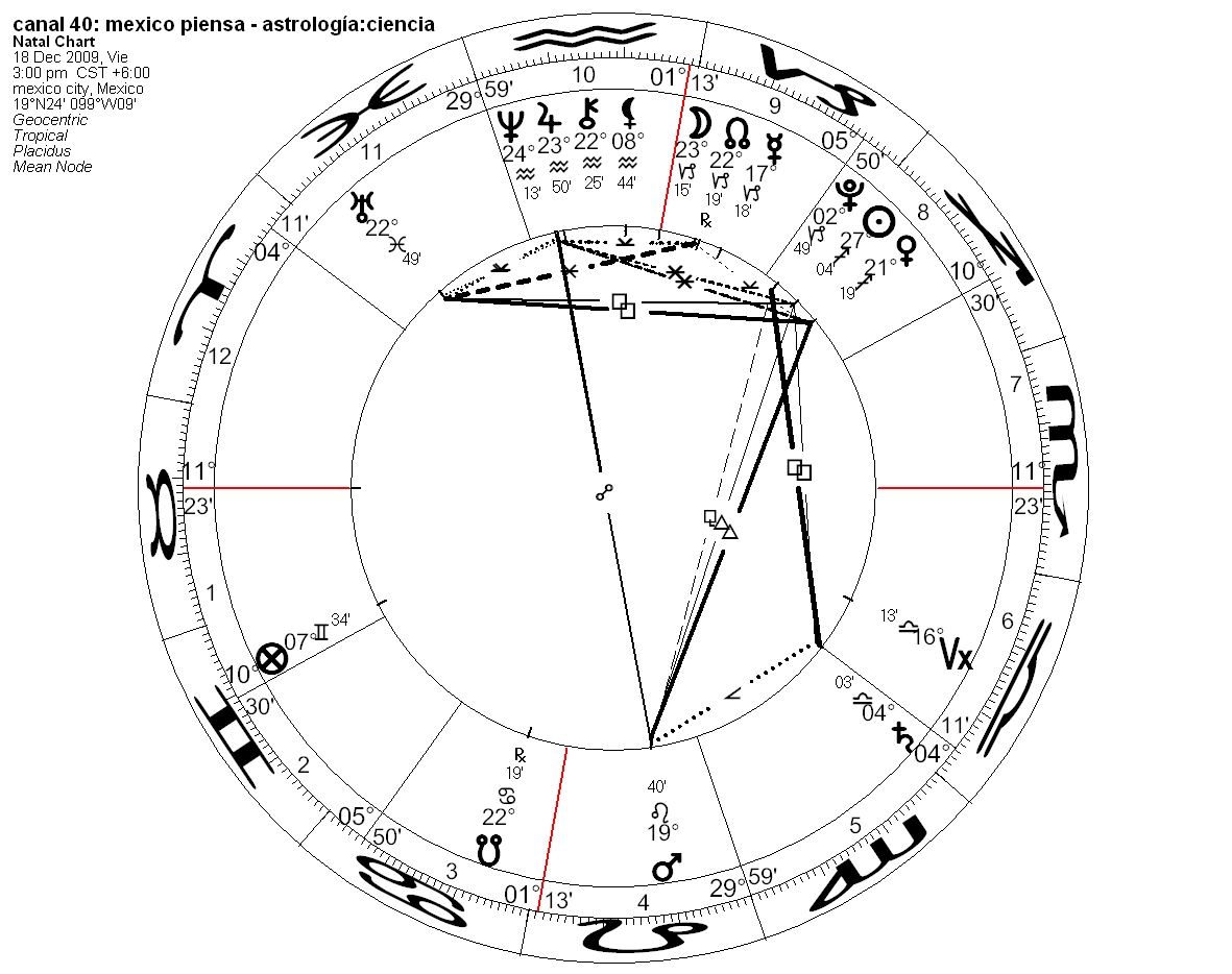 El viernes 18 de diciembre de 2009 a las 3 de la tarde en la ciudad de México, participé en un programa de televisión en el canal 40: Pensar México. El tema del día era Astrología versus Ciencia. La Luna estaba “fuera de curso” como se ve en la carta 1, y aunque no pasó nada nuevo la experiencia me condujo a reflexionar con más profundidad sobre lo acontecido y aclarar algunos puntos específicos