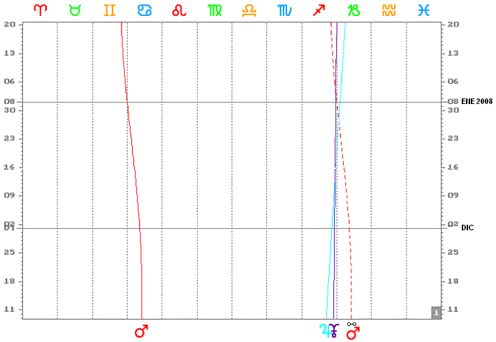 de Sagitario) por su Marte natal (regente de MC natal, que no contiene planetas)