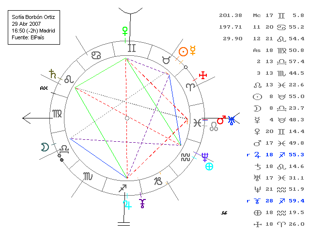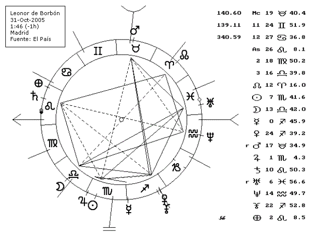 Madrid (AS 18º 51' Virgo), también por cesárea como su hermana