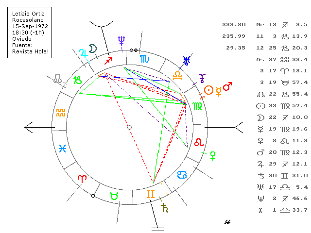 Muere Erica Ortiz, la hermana menor de Doña Leticia Ortiz Rocasolano. No disonemos de su carta, pero sí de la de Leticia. El paso de Plutón por el Júpiter natal de Leticia coincide con una etapa muy dura para su hermana, que se había separado hacía algunos meses y atravesaba una depresión, hasta que el pasado 7-Feb apareció muerta (supuestamente se suicidó) en su domicilio, a los 31 años. Júpiter es regente de la Casa 10 de Leticia, y la Casa 10 es la 8ª casa (la muerte) derivada de la Casa 3 (los hermanos).