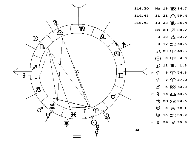 grado 15 de Libra, a menos de 1º de la oposición exacta al Júpiter
