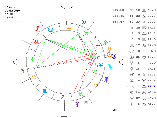 Saturno-Urano domificada en Madrid, Plutón cae sobre el AS horario.