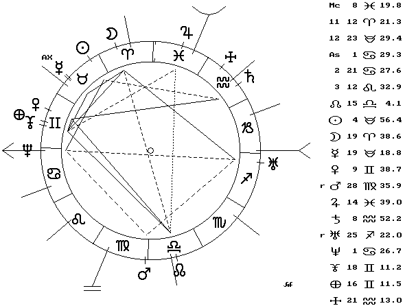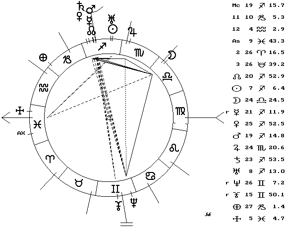 su Sol, Luna, regente de AS y regente de MC en signos fijos (en el eje Acuario-Leo),